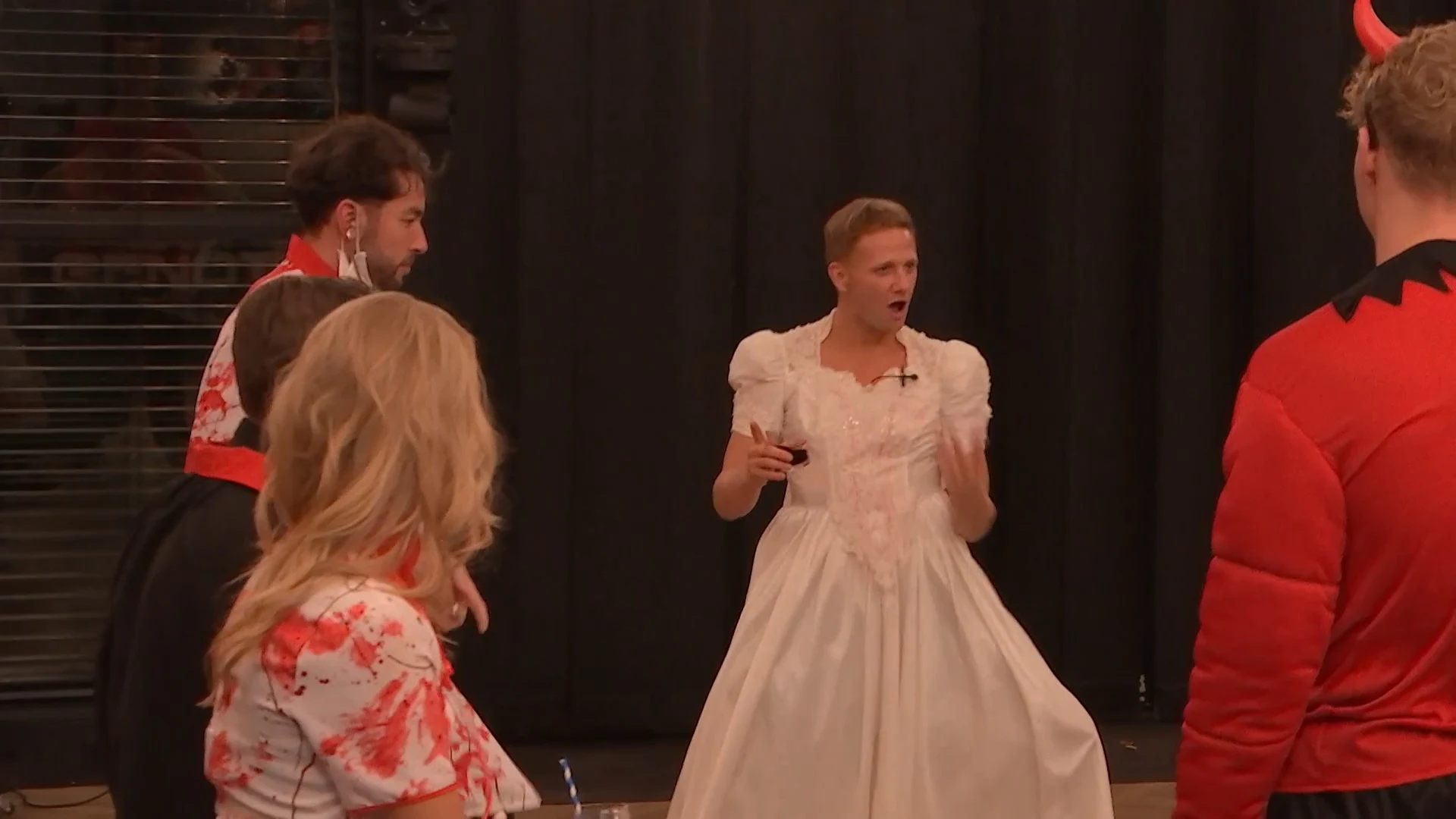 Alle deelnemers zijn verkleed en opgemaakt na de Halloween-opdracht. Dus dan is het nu tijd voor het feestje!