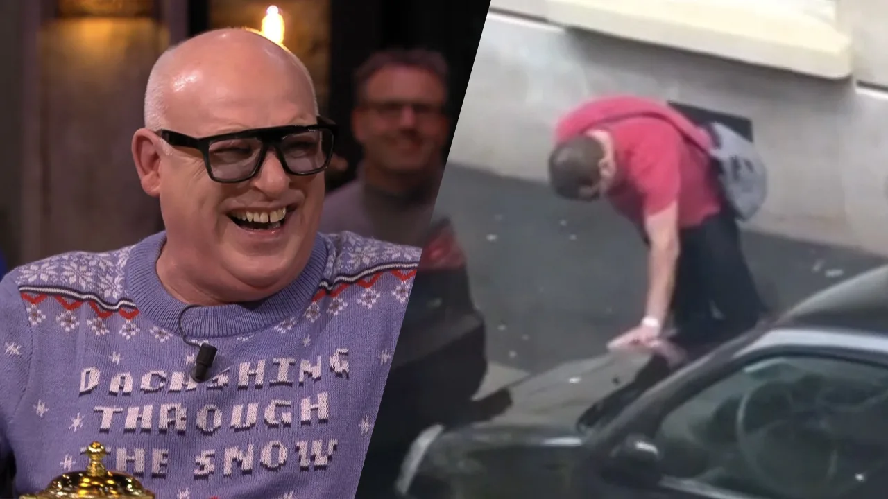 René giert om filmpje van plassende man: 'Hij valt in z'n eigen zeik!'