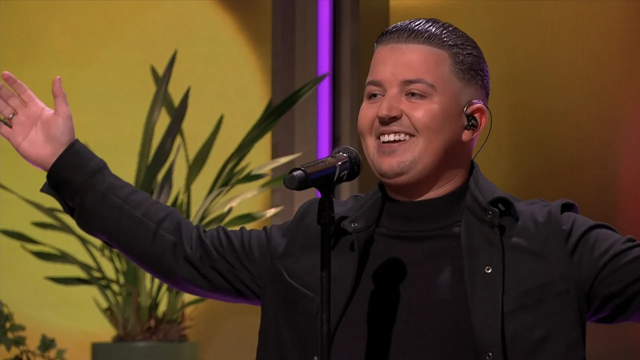Marco Schuitmaker opent de uitzending van De Oranjezondag met zijn nieuwe nummer 'Schaam Je Voor Je Tranen Niet!'