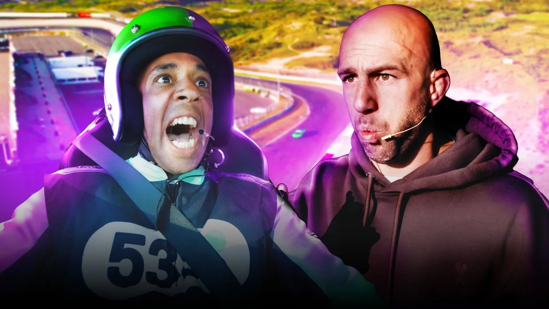 Onder druk een quiz doen is natuurlijk moeilijk, zeker als je met 220 km/h over het circuit scheurt. Maar de track van je beste maat niet kennen is wel een tikkeltje gênant hé Bizzey?
