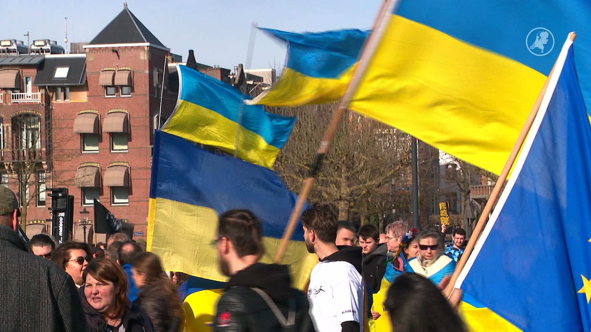 Op de Dam in Amsterdam zijn zondag ruim duizend mensen bijeengekomen om stil te staan bij de oorlog in Oekraïne, die maandag drie jaar geleden begon. De manifestatie is een initiatief van de stichting Oekraïners in Nederland.