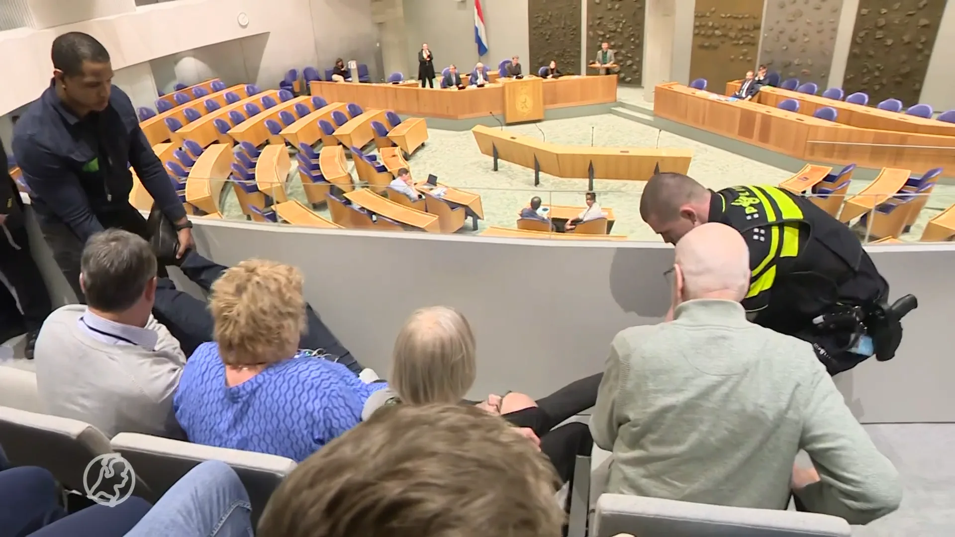 Het wekelijkse vragenuur in de Tweede Kamer is opnieuw onderbroken door een pro-Palestijnse demonstratie op de publieke tribune. Begin vorige maand gebeurde dat ook al. Dat leidde toen tot afkeurende reacties bij de meeste partijen.