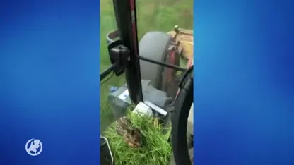 Boer redt reekalfje uit maaiveld
