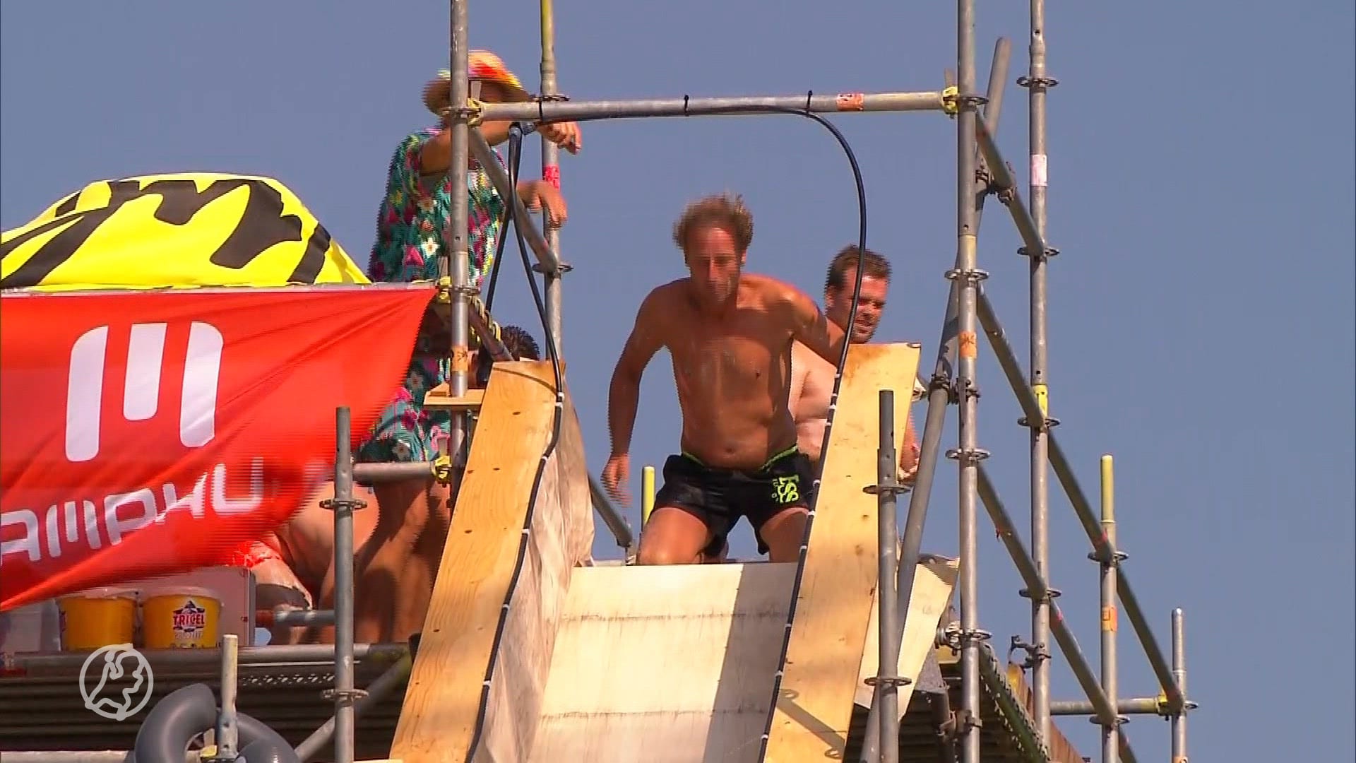 Deelnemers roetsjen meters naar beneden en worden vervolgens gelanceerd. Het was een prachtige dag voor het NK Buikglijden!