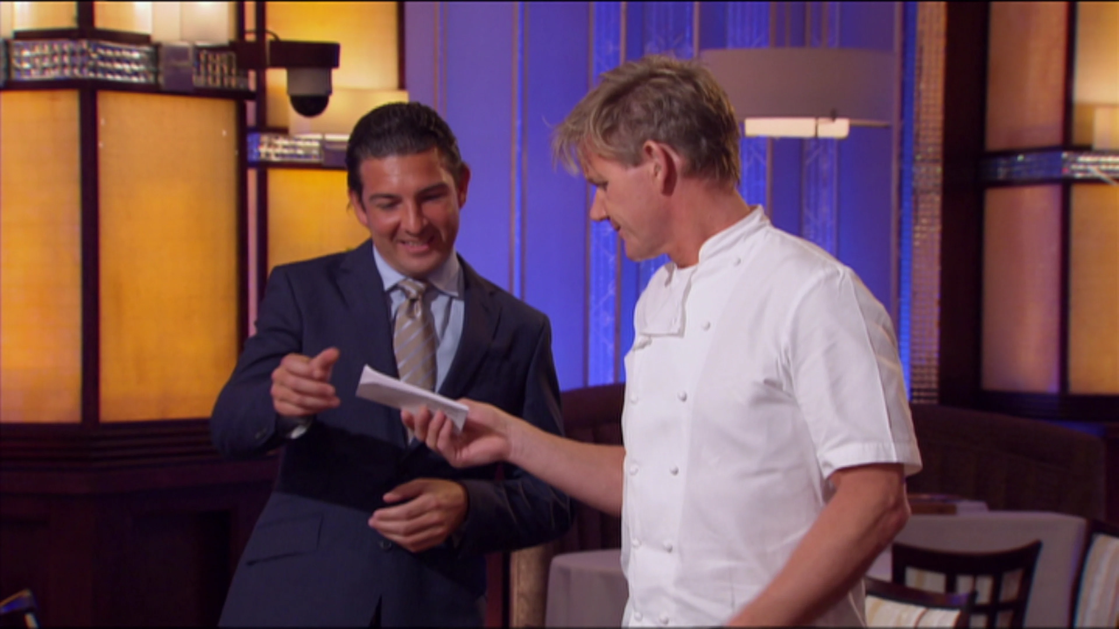 De laatste vijf chefs moeten zich bewijzen met een indrukwekkende gourmetburger. Chef Ramsay en een zaal vol culinaire experts bepalen de beste en slechtste burgers. De winnaar wordt beloond met een ontspannende spadag, terwijl de rest zich bezighoudt met eindeloze klusjes. Later loopt de spanning op wanneer ze een vip-gast moeten bedienen, maar grote fouten in de keuken brengen het diner bijna tot stilstand. Een chef moet uiteindelijk de competitie verlaten.