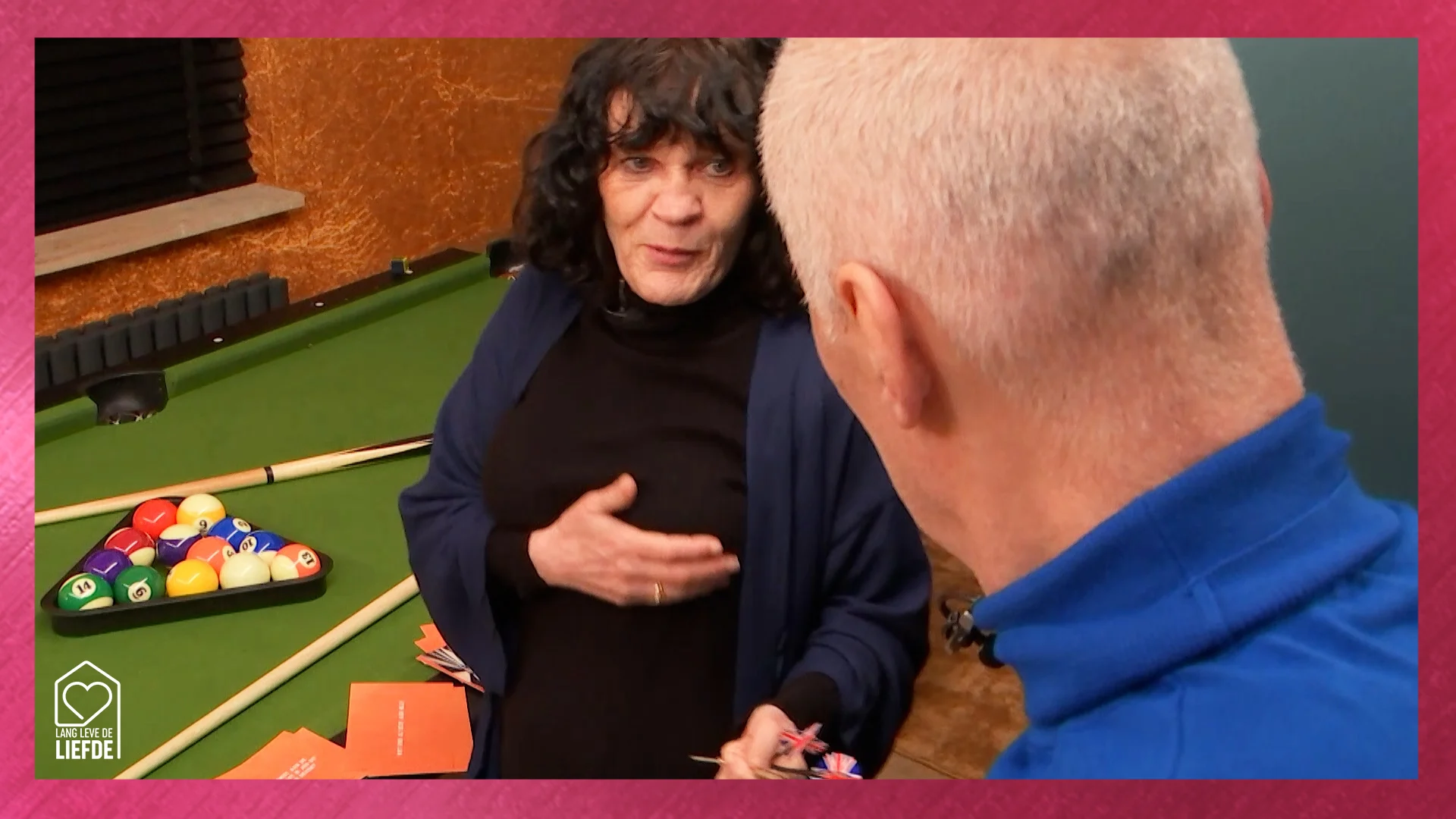 De twee zijn aan het darten en Diana vraagt wat Frans sexy vindt. Hij bekijkt het even van top tot teen en zegt dan dat ze een hele goede voorgevel heeft. Diana zal Diana niet zijn en weet gelijk te zeggen: "Oh dat heb jij al gezien?" Waarop Frans toch eerlijk ja zegt. Diana weet hem weer goed op zijn plek te zetten en zegt: "Ouwe, vieze snoepert!" Hoe zal Frans hierop gaan reageren?