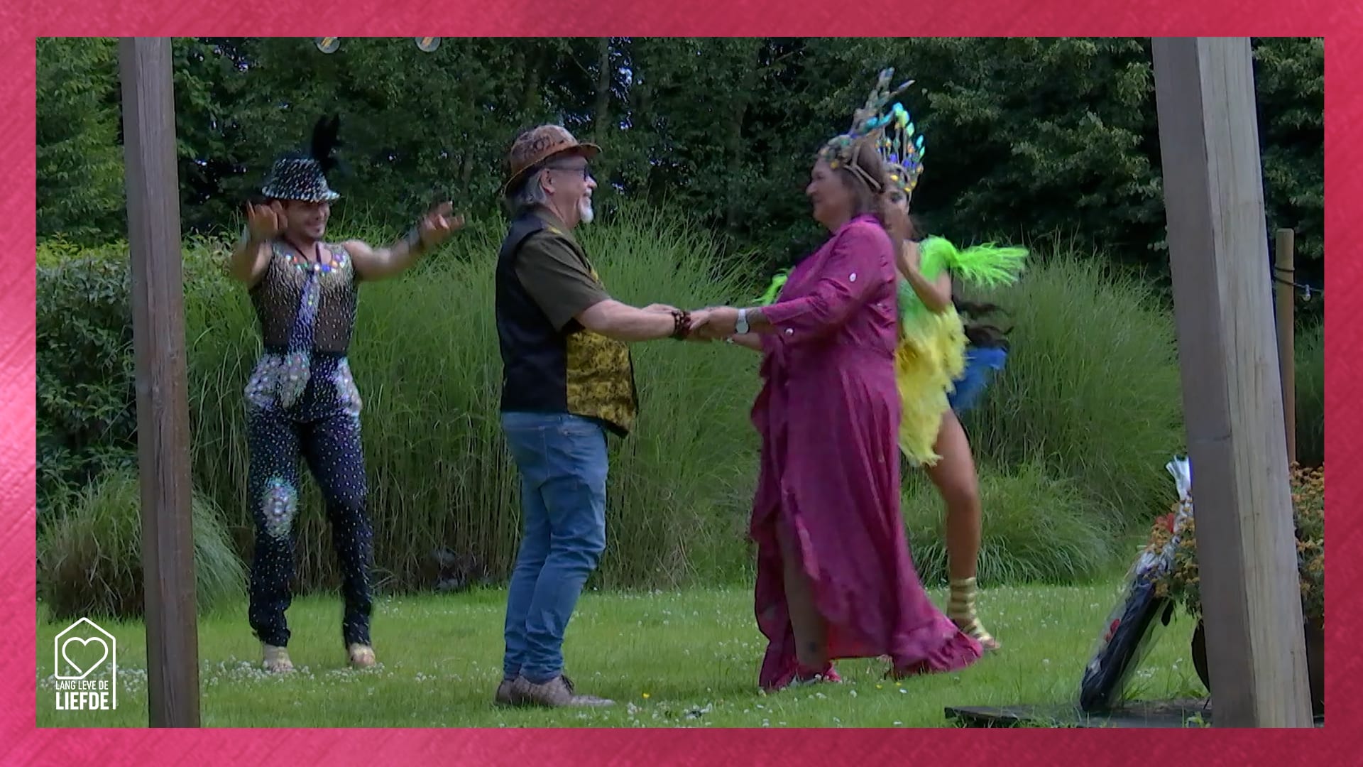 Haike komt de tuin in en ziet Marie-Louise dansen met Braziliaanse dansers en een mooie kroon op haar hoofd! Ze begroeten elkaar en gaan samen dansen! Wat zou Marie-Louise vinden van de losse heupjes van Haike?