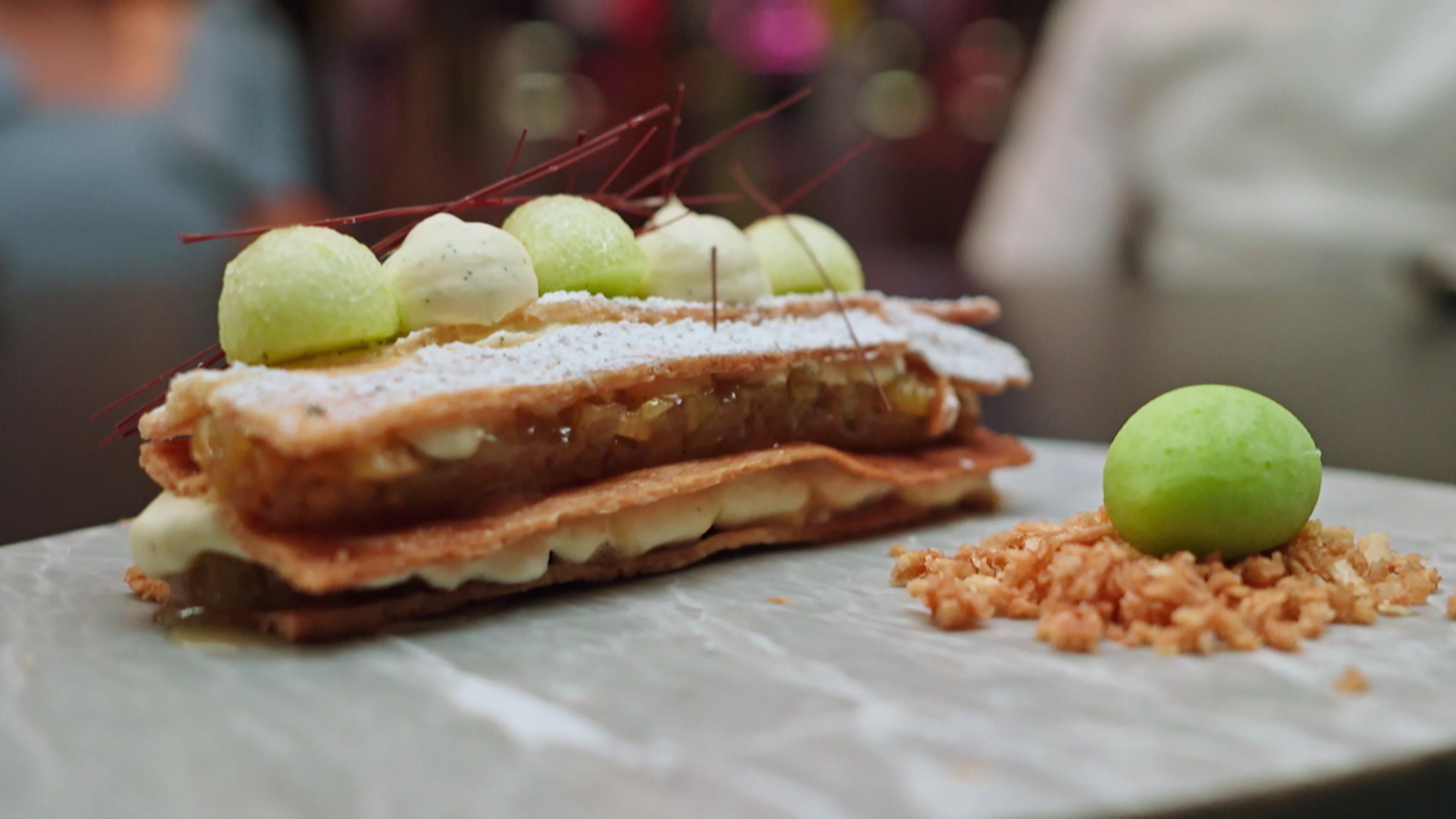 De keuken is omgetoverd tot een tafereel uit een typisch Australisch plattelandsstadje. De tafel staat vol met countryklassiekers: lamington, vanilleplakjes en custardtaartjes.