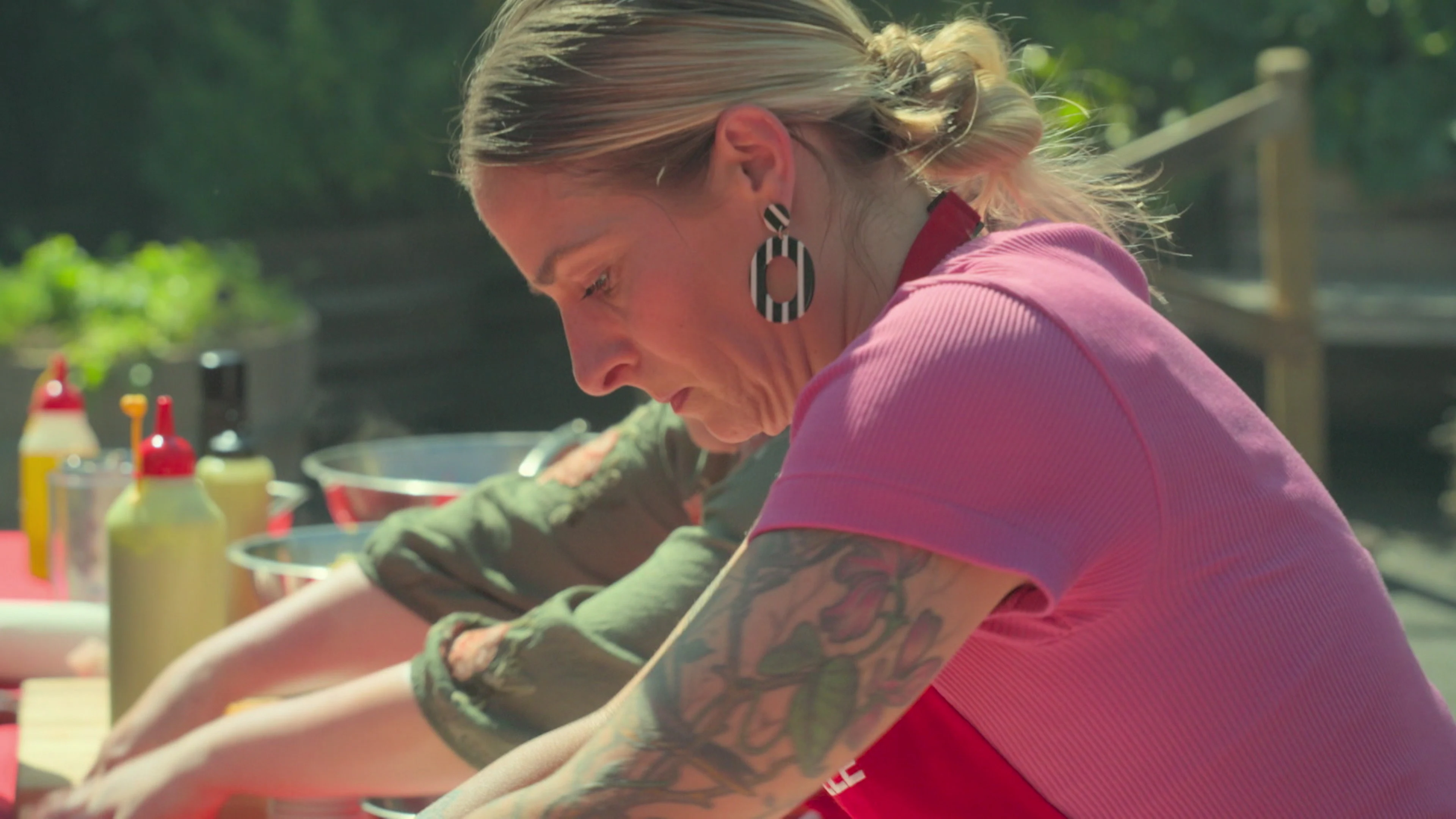 De duo's worden opgesplitst in twee teams en moeten een tuin vol barbecue-liefhebbers voorzien van eten.