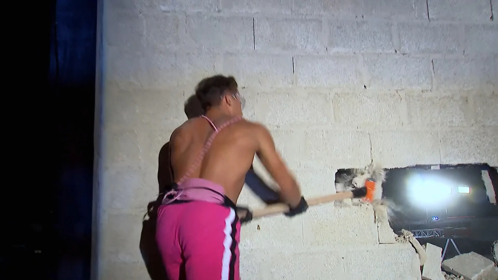 De Muscles moeten een muurtje slopen! Wie krijgt dit als eerste voor elkaar? De Muscles met de snelste tijd wint de meeste speeltijd voor zijn Brain.