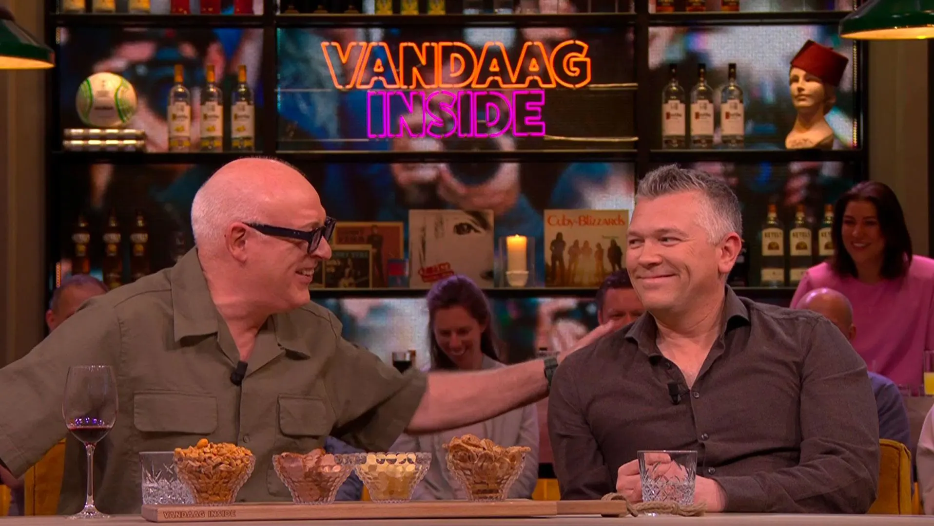 Johan, Wilfred, René en Wouter de Winther bespreken in razendsnel tempo de actualiteit: Johan krijgt een gigantische sigaar van Pieter Cobelens, een basketballende koning en een woedende Gordon.