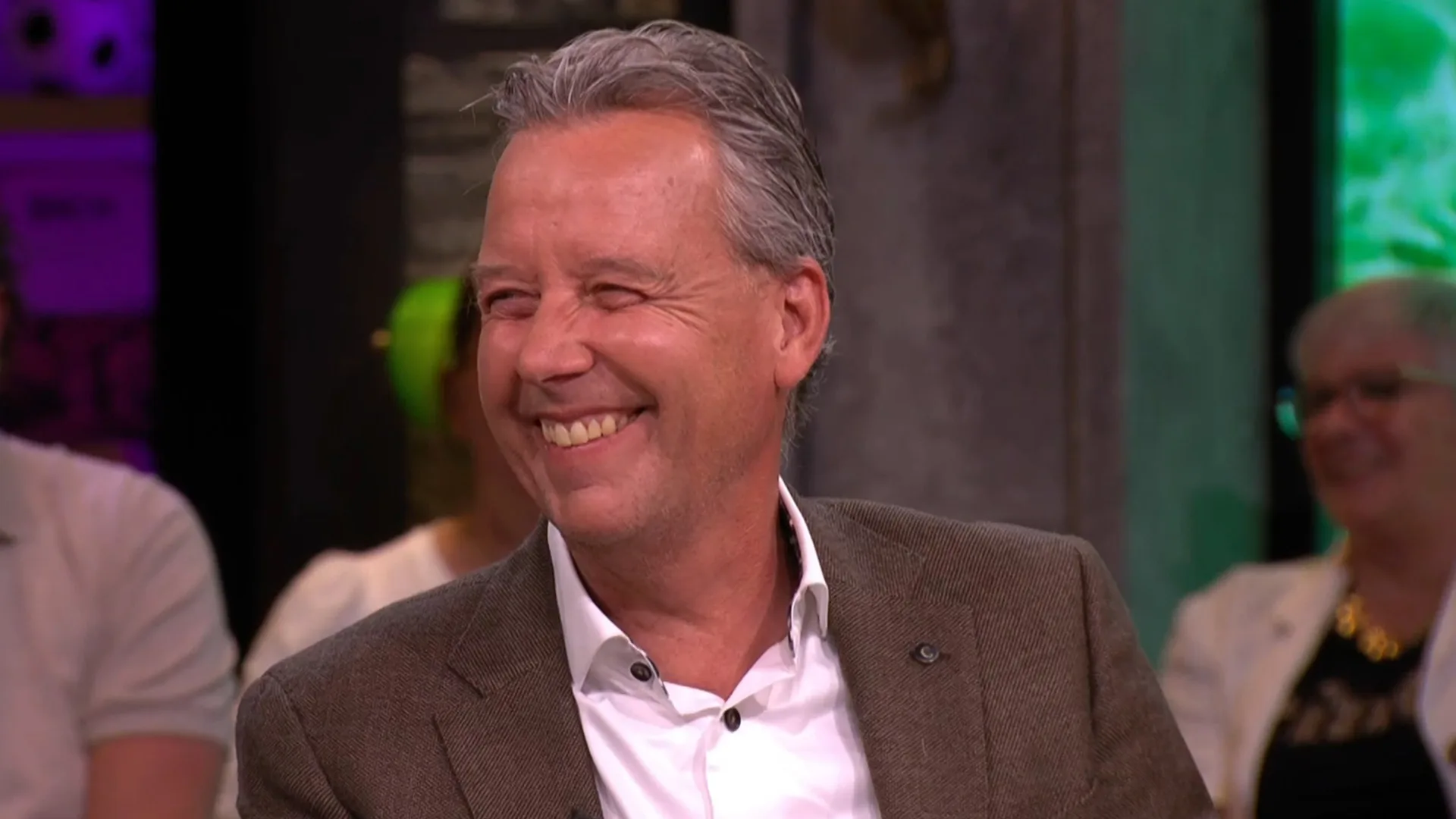 Johan, Wilfred, René en Valentijn Driessen bespreken in razendsnel tempo de actualiteit: Marco Kroon grijpt in bij protest, paniek bij Jeroen van der Boom en Bas Nijhuis geeft rood aan Wouter Goes.