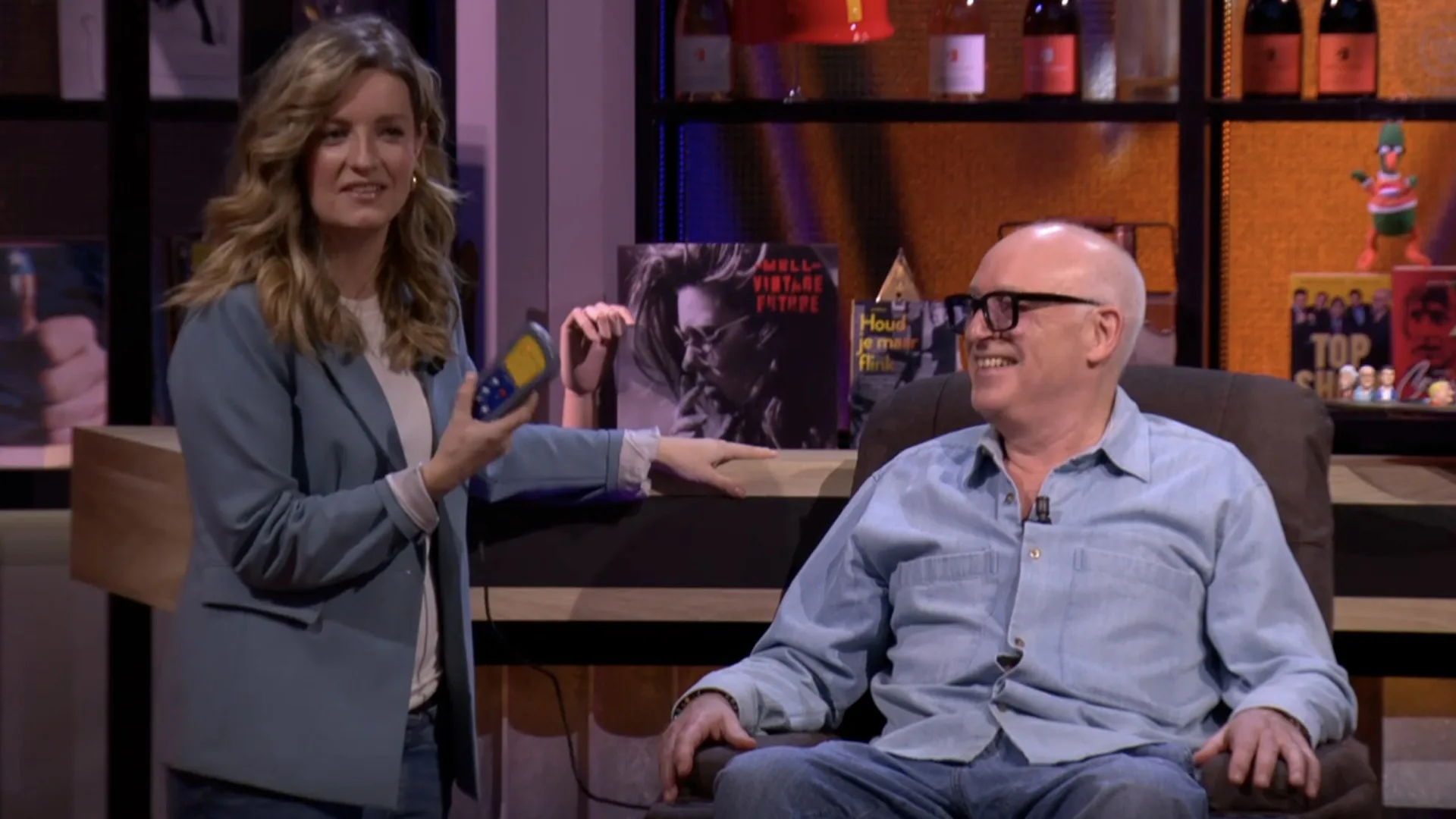 René van der Gijp test bij Vandaag Inside de stoel die Merel Ek dinsdag in de uitzending kreeg vanwege haar zwangerschap: "Hij trilt heel erg bij je billen, een beetje wat Albert Verlinde iedere avond heeft!"
