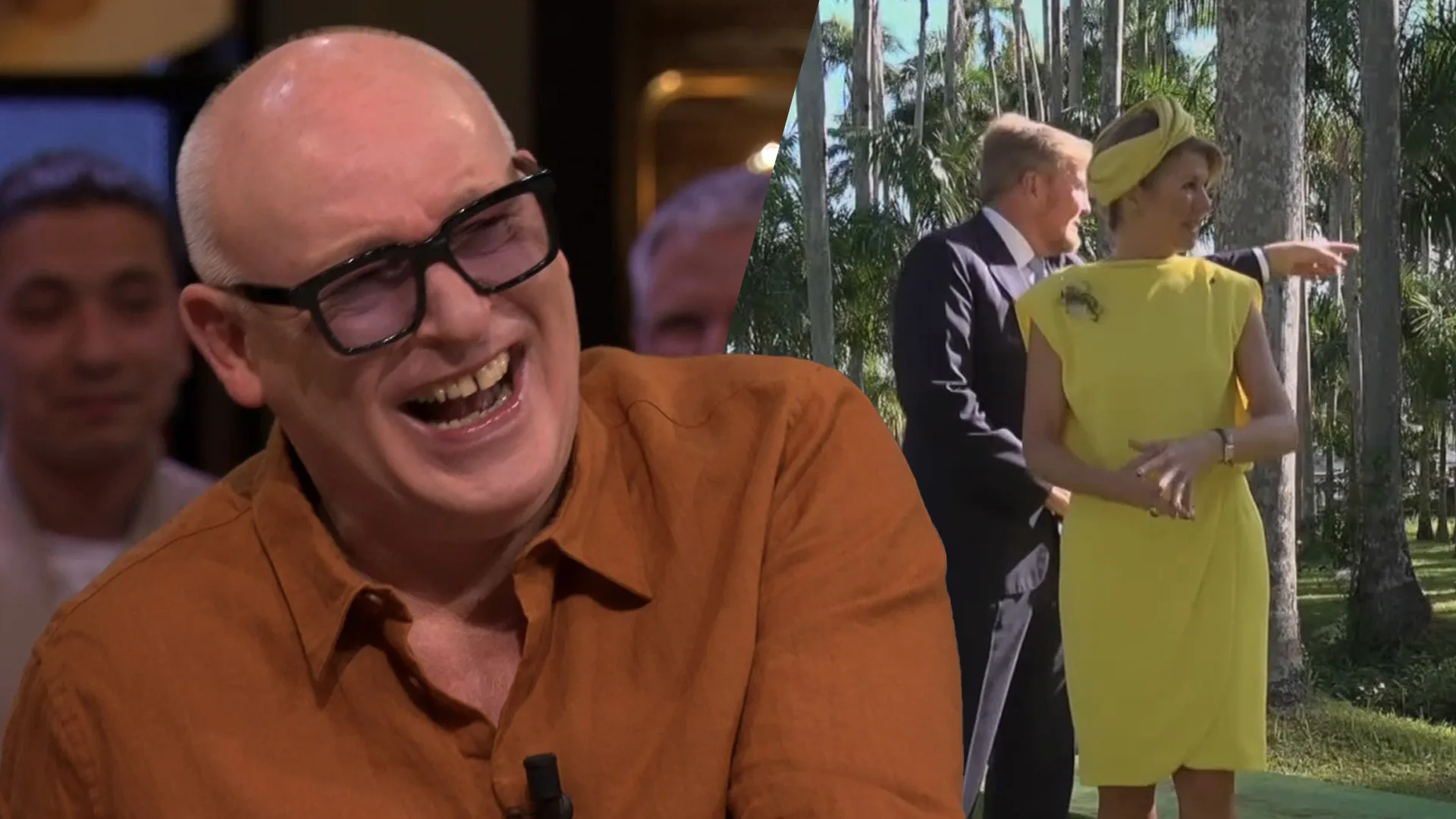 René van der Gijp kan bij Vandaag Inside zijn lach niet bedwingen wanneer hij beelden ziet van koning Willem-Alexander tijdens een fotomoment in Suriname. De koning moest daar op de foto, maar op de achtergrond stonden auto’s met inzittenden die weigerden weg te rijden. Dat zorgde voor een ongemakkelijke situatie. In het fragment is te zien hoe de koning naar de auto's wijst en roept: “Overste! Overste! Die auto’s moeten weg daar! Nee, die dáár!” Daarna klinken getoeter en ronkende motoren. René van der Gijp komt niet meer bij van het lachen, terwijl Johan Derksen droog opmerkt: “En dan zijn er nog steeds mensen die de monarchie belangrijk voor het land vinden…”
