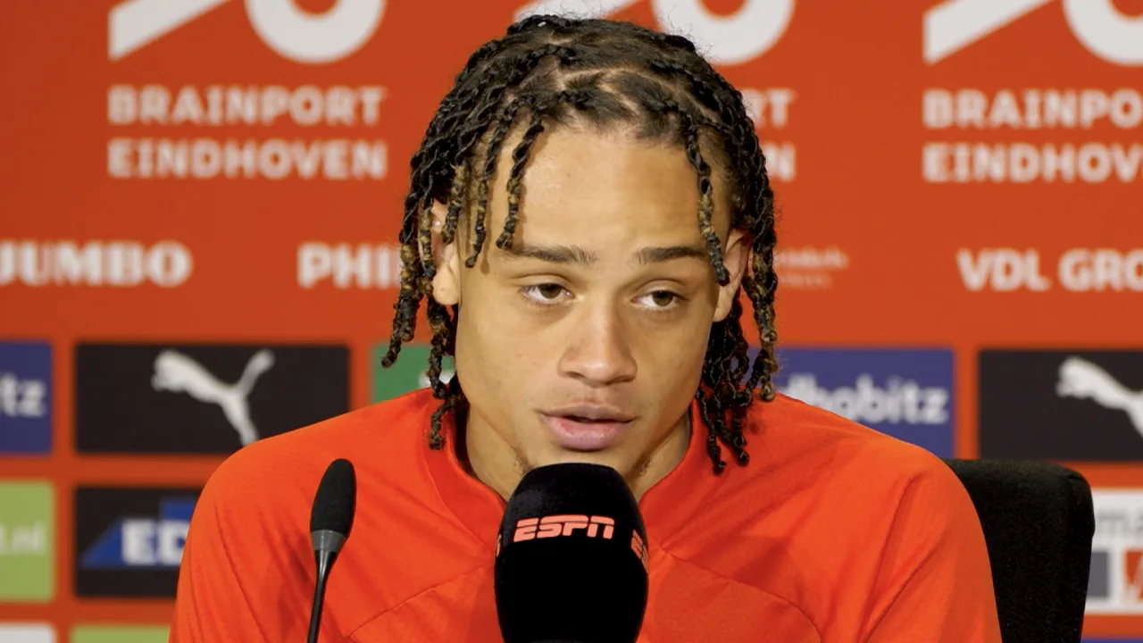 PSV-speler Xavi Simons benadrukt tijdens de persconferentie na de zege op Ajax (3-0) dat zij niet voor de tweede plaats spelen maar voor de eerste plaats.