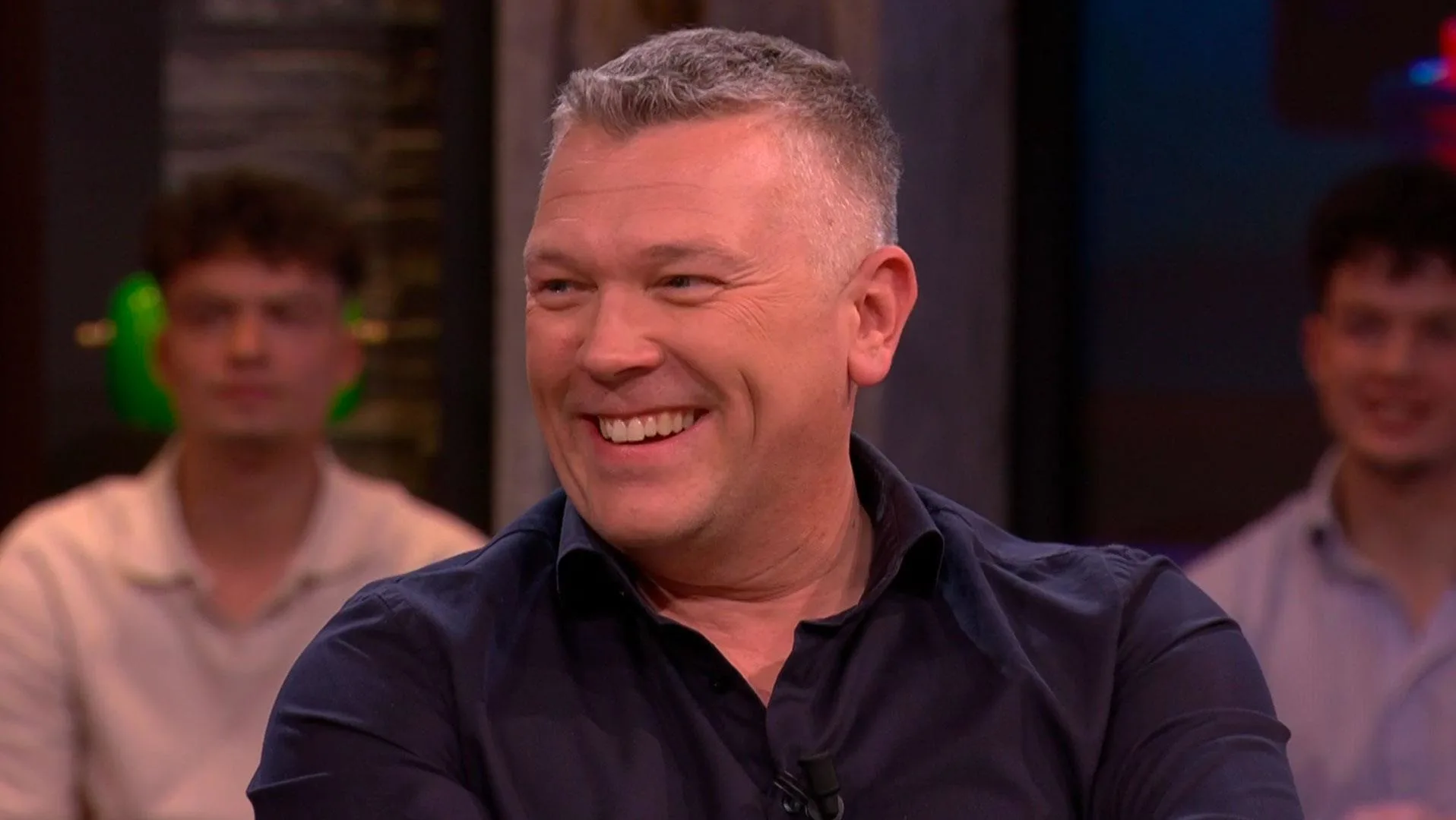 Johan, Wilfred, René en Wouter de Winther bespreken in razendsnel tempo de actualiteit: de songfestivalact van Joost Klein, het interview van Soumaya Sahla en de dronken Jamie Carragher.