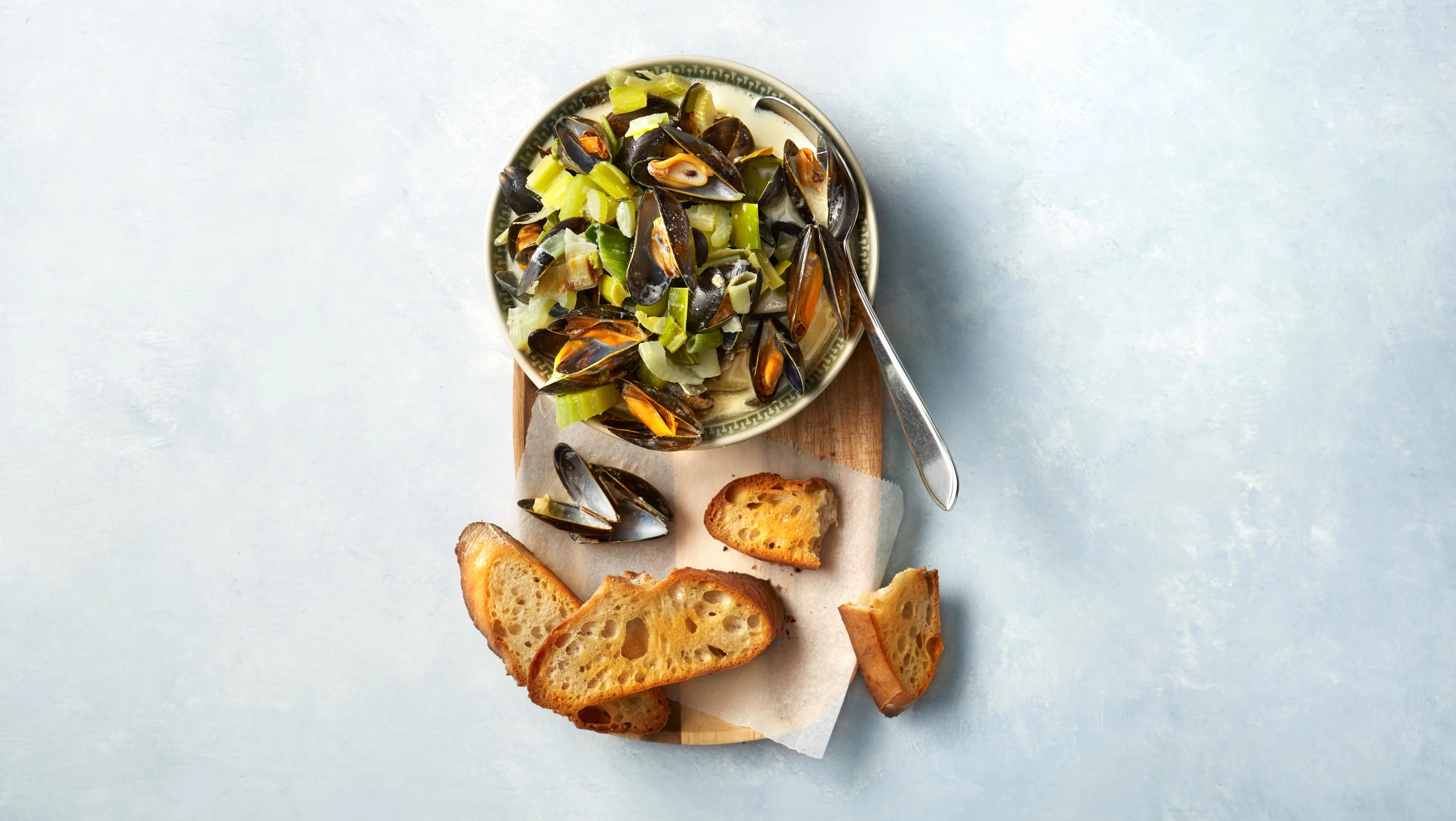 Door de toevoeging van mosselen maak je van je soep een volledige maaltijd. Maak er nog een knapperig knoflookbroodje bij en je hebt weer een gerecht om je vingers bij af te likken.